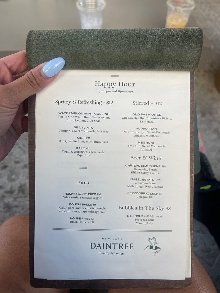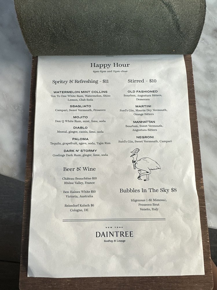 Daintree is a rooftop bar located in Midtown, offering breathtaking views of the city skyline, including the iconic Empire State Building. With cozy couches, spacious seating, and a romantic ambiance, it is an ideal spot for a date night or catching up with friends. Customers rave about the stunning views, especially from the outdoor terrace. The cocktails, like the N.Y. Iced Tea, are highly recommended, although priced on the higher side. While some reviewers mention the strong drinks, others suggest focusing on beverages rather than food. Overall, Daintree stands out for its ambiance, views, and service, making it a must-visit spot in New York City for a memorable evening.